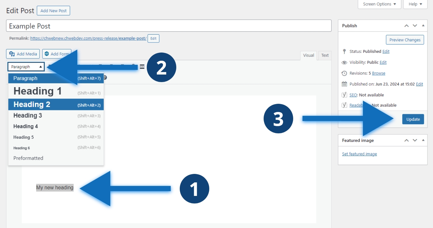 - Select the style dropdown and select the appropriate heading, it defaults to “Paragraph”