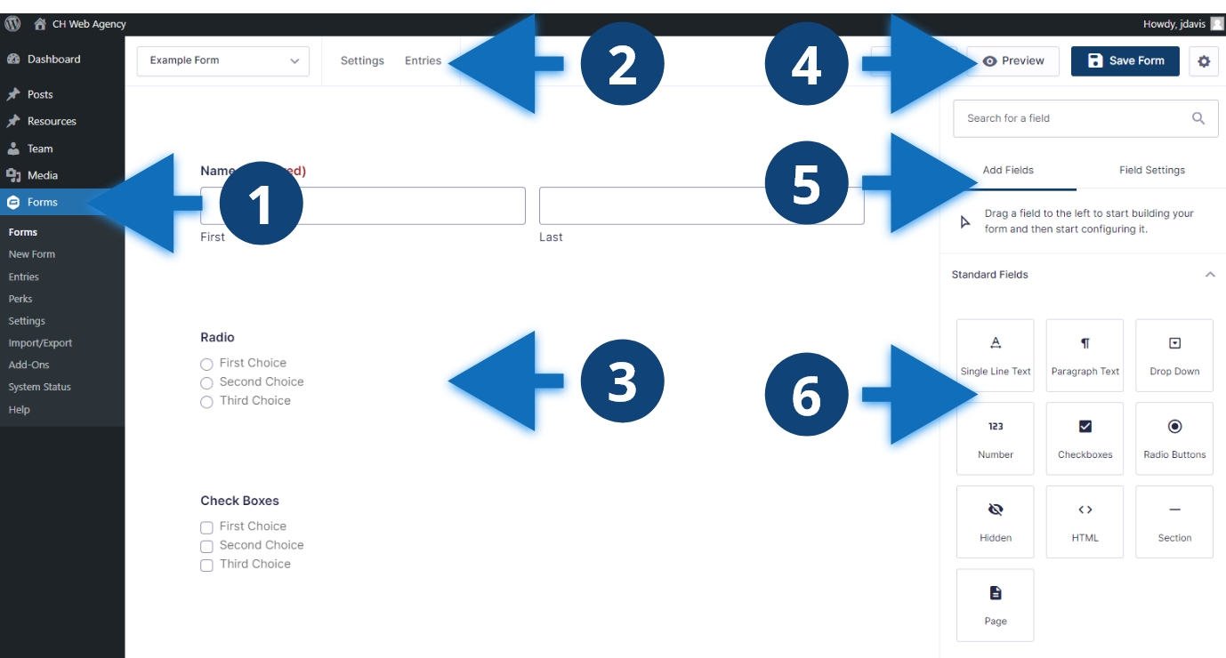 - You can access forms using the “Forms” link in the dashboard sidebar.